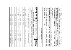 卷一:修譜紀(jì)實(shí)、人物春秋、先祖像贊、家族規(guī)范、續(xù)譜芳名紀(jì)年對(duì)照表等;卷二:老譜傳序;卷三:毗陵馮氏后裔遷徙一覽表、仕宦源流考、統(tǒng)宗世表、大宗世表;卷四至卷十二:各分支世系世表