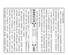 · 提 要江南殷氏始祖秉常公,扈蹕宋高宗南渡,居潤州之大港,又四傳就閑公,為韶州(今廣東韶關(guān))教授,座于官。宋紹興六年(一一三六),其子雪齋公,扶櫬還鄉(xiāng),葬父于太湖之濱杭?jí)]大山,至今墳塋猶存,墓碑屹立。因愛毗陵東南湖山之秀,遂卜宅于嶺下,名其地曰梅村。尊就閑公為梅村始遷祖卷一:卷首、老譜序、殷氏源流考、文獻(xiàn)錄、例言、宗規(guī)卷二:家規(guī)家訓(xùn)、像贊、世系說、詩文贊語卷三:合族世系圖、合族始祖世表、各分支世系世表卷四至卷七:仁莊殷氏修譜說明、恩綸引、仁莊宗祠記、世系世表卷八: 老譜傳、序、行略、合傳、行述。