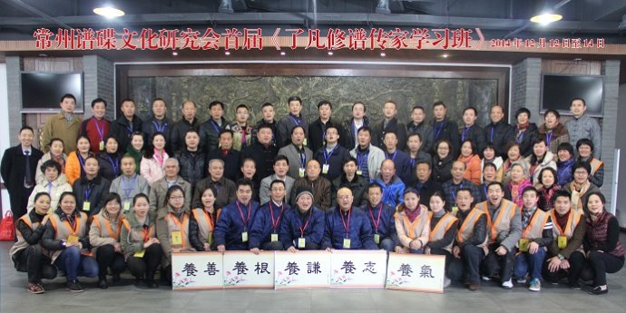 家族是一棵生命大樹,老人是根,老人根深,兒孫業茂。養老是老人的大事,也是家族興盛的大事,更是中華民族世代傳承的大事。養老,不是養狗養貓,養花養鳥,也不僅只有養生或長壽,養老貴在傳家。人的生命是在家族傳承中孕育的,傳家是生命的第一道義,更是養老的根本使命。在傳家中養老,在養老中傳家。傳家,傳什么?傳家風、家規、家訓、家譜。趙錢孫李,周吳陳王,百姓傳家,千秋基業,萬世興盛。本會與著名心理學專家、好心情中國文化講堂創辦人智然老師的倡導,于2014年12月11日至14日(四天),在無錫了凡書院舉辦常州市譜牒文化研究會首屆了凡修譜傳家學習班,智然老師,岳祖瑞副會長等分別授課。50多名學員來自廣東、福建、江西、浙江、湖北、河南、河北、陜西、山東、江蘇、北京、遼寧、吉林、內蒙和上海等15省市的養老院、社區養老機構,老干部局,老年大學姓氏文化研究機構、宗親組織、企業領導人和有志于修譜傳家人士。通過培訓學員們基本掌握了譜學基本知識,修譜步驟操作方法和應該注意的事項,學習效果顯著,其中27名學員表示回去后要修家譜,23名表示要發動家族修家譜。本會在結業儀式上給每位學員頒發了常州市譜牒文化研究會了凡修譜傳家學習班《結業證書》、贈送《修譜指南》一書。